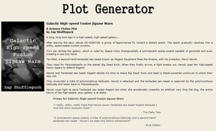 random story gen – sci-fi Posted by mikemacdee on February 22, 2016 This is an image for Random Plot Generator. Images navigation ← Previous Next →